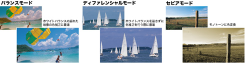- バランス、ディファレンシャル、セピアモード切換機能