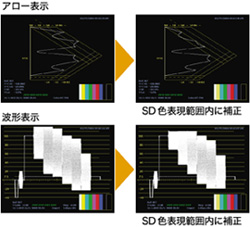 コンポジットクリップ機能をONにすることでHD映像の持つ色情報を、見た目のイメージを維持したままSDの信号範囲内に自動調整。これによりHD映像の持つ色情報とSD映像の表現可能な色情報の差異により、サイマル放送時などに発生する色の不一致を瞬時に解決します。