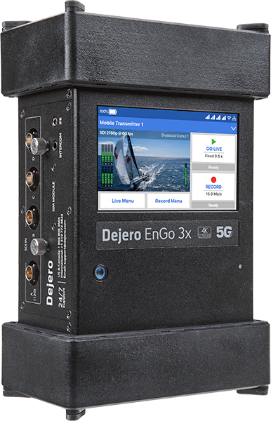 EnGo 3xは、高度なRFおよびアンテナ設計と最大7つのネットワーク接続(5G/4G/LTE/Wi-Fi接続/イーサネット接続/ポータブル衛星接続)をブレンド可能なDejero独自技術Smart Blending Technologyの組み合わせにより、困難な帯域幅条件でも、放送品質の画質を低遅延で確実に伝送します。携帯電話ネットワーク上で最短0.5秒という短いglass-to-glass遅延を実現。どこからでもライブビデオを伝送でき、移動しながらのライブ中継も可能です。