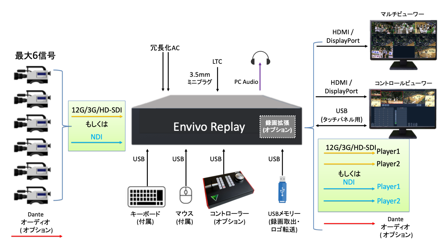 - オーディオ:エンベデッド/Dante®(オプション)