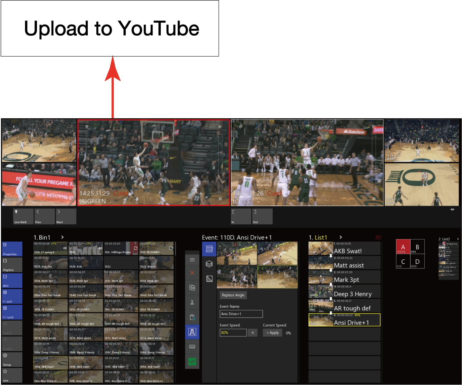 使い易さにこだわった直感的なインターフェースを採用。マルチカメラ入力に対応し、スマートフォンやタブレットを操作するように、タッチパネル上で指1 本で即座にリプレイ映像を作成可能。ブランディングロゴを追加し、YouTube へもスピーディーに配信。バスケットボールを始め、野球、アイスホッケー、サッカー、競馬や大学スポーツ等、数多くの現場で活用され、ファンエンゲージメントの最大化をサポートしています。試合中のリプレイ映像の作成やスローモーションを活用したプレーの分析、コーチングに最適。