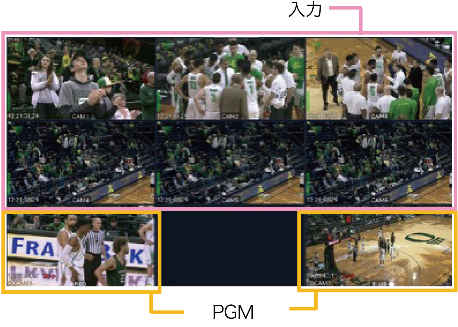 編集画面とは別に、入力信号とPGMをマルチビューワーで表示/出力。これにより、入出力の内容を別画面で容易に確認が可能。
