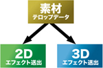3Dエフェクトに対応しました。制作段階では3Dを意識する必要はありません。素材やフォントなど、現在お使いのTelopStationによる制作環境を維持したまま、オブジェクト単位に送出側でのリアルタイム3D効果送出処理を行うことができます。又、2D素材のまま番組内に使用することも可能です。また、3D-VWSとのデータ互換を実現。3D-VWSで制作した3Dエフェクト付きのテロップ素材をそのまま送出する事が可能です。(一部制限あり)