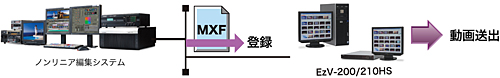 - EzV-200/210HSのテロップ素材を番組/項目/テロップの階層構造を維持しながら、グラスバレー社製ノンリニアソフトウェアEDIUSに最適化してエクスポート。