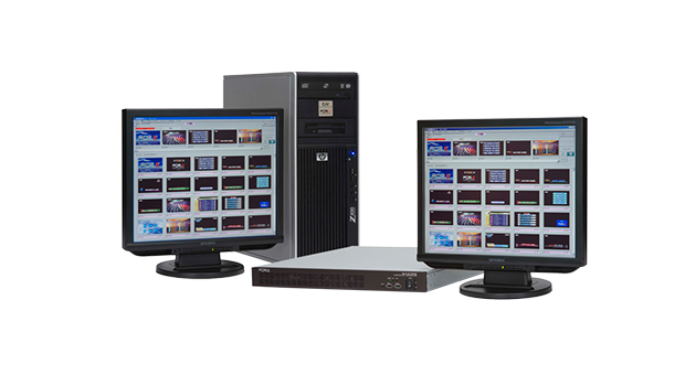 動画オプションにより、フルサイズのHD V/K動画送出を実現。オープニングCG等のプレイアウトが可能です。(テロップと動画の同時送出はできません)動画フォーマットは、Panasonic P2(DVCPRO)のMXFに対応。ノンリニア編集機で作成されたMXFファイルをネットワーク経由で登録可能。