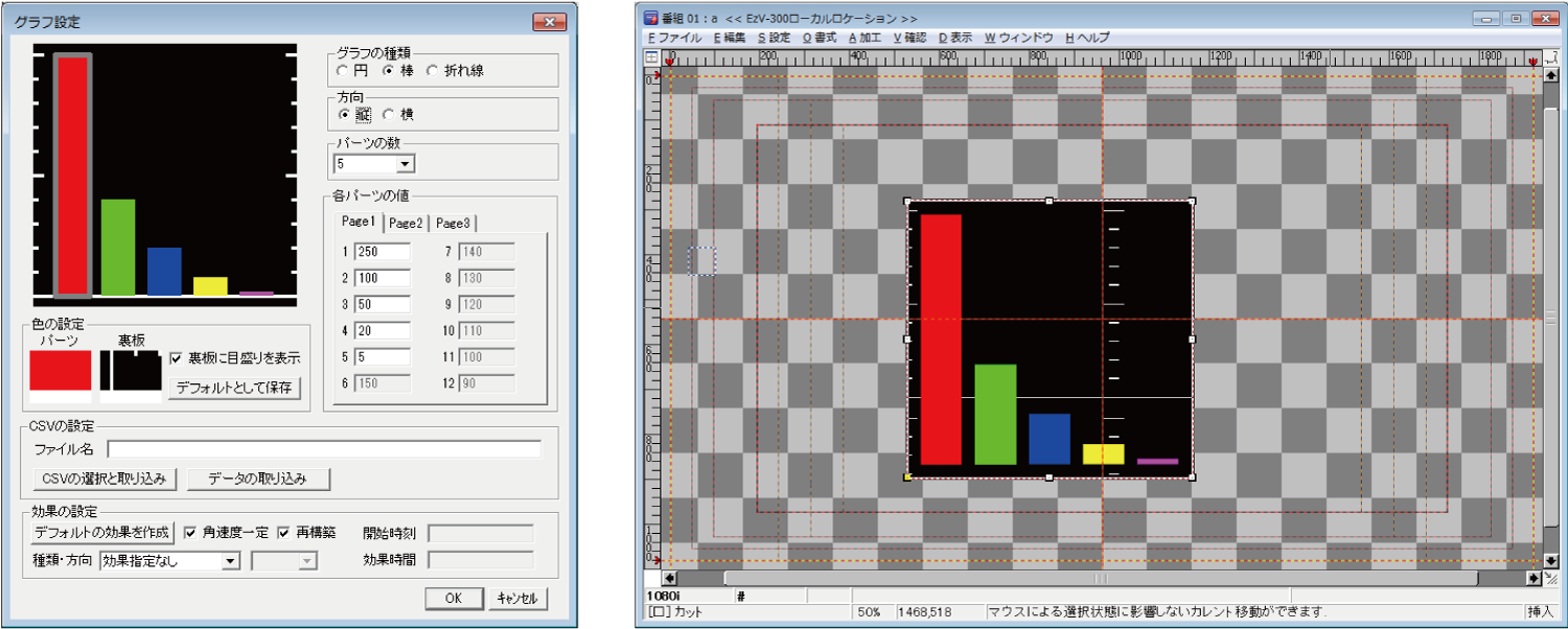 円グラフや棒グラフなど、様々なグラフをパラメーターの入力から自動生成が可能。