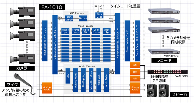 • FA-1010にて各種入力機器の同期合わせ、ディレイ調整、色補正が可能です