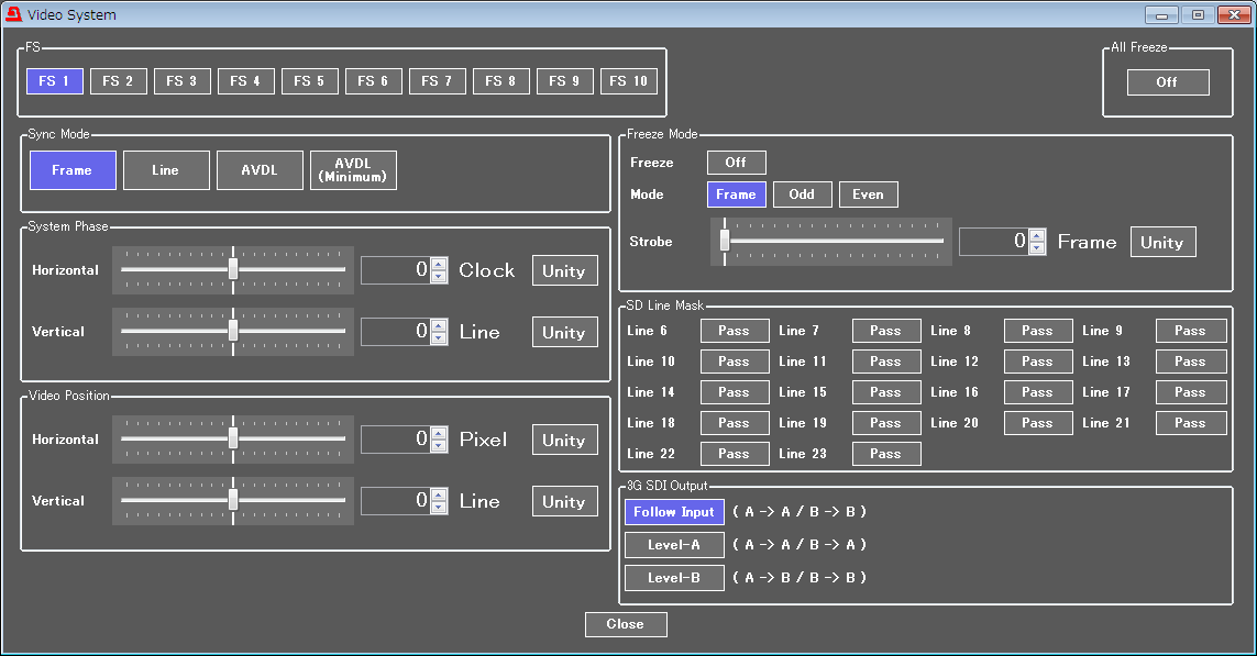 ゲンロック信号に対して一定の遅延で出力するモードです。引き込み範囲はHD時5H、SD時1Hになります。ゲンロック信号とビデオ入力信号が同期の場合にのみ使用できます。