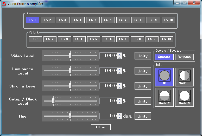 各パラメータには朋栄のカラーコレクタではおなじみのUNITYボタンを搭載。ボタンを押すだけでデフォルト状態に復帰させることができます。