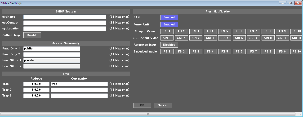 FA-1010は標準でSNMPに対応しています。電源、ファン、信号等に関するアラーム監視をSNMP経由で行うことも可能です。