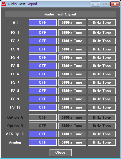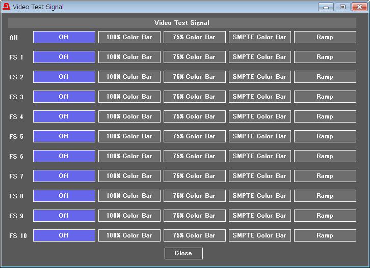 チャネルごとに100%カラーバー、75%カラーバー、SMPTEカラーバー、Ramp信号の出力が可能です。