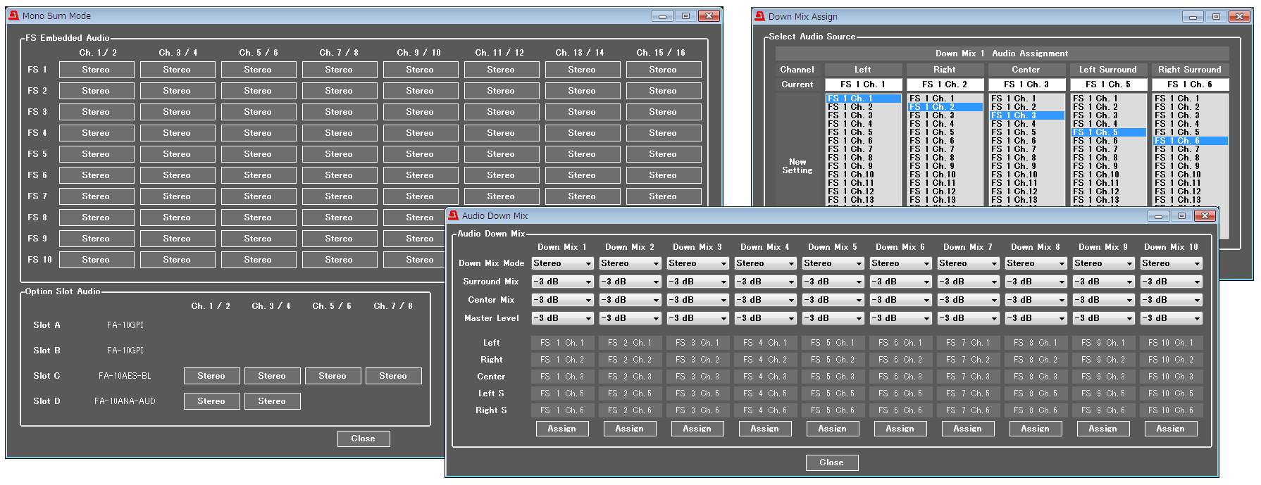 • ダウンミックスは、SDIエンベッドされた音声信号のみに対応