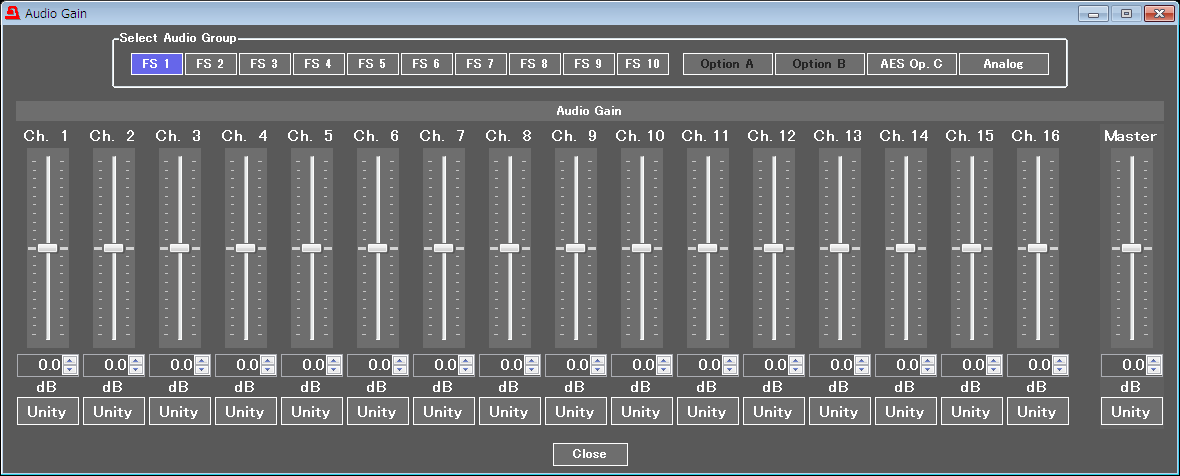 オーディオチャネルごとにゲイン調整が可能です。ボタンを押すだけで基準値に戻すことが可能なUNITYボタンも実装しています。
