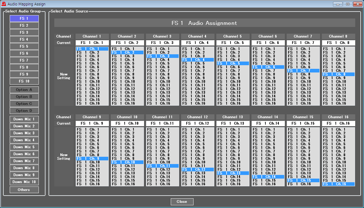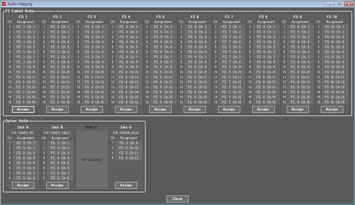 オーディオ信号は各ビデオに対してどのチャネルをアサインするか、オーディオ1チャネルごとにリマッピングが可能です。標準で160チャネル、オプション実装時には最大192チャネルものオーディオを自由にリマッピングできます。ディレイ調整や極性変換もチャネルごとに可能なため、オーディオプロセスのために専用の機器を追加することなくシステムアップが可能です。