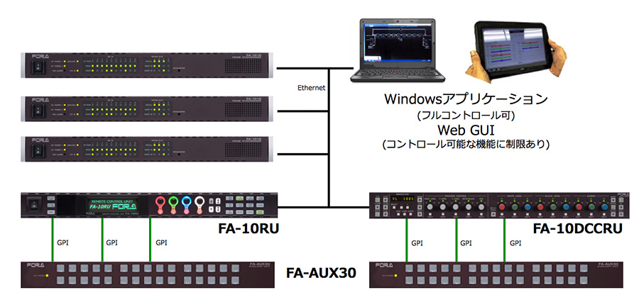 • 外部リモートユニットFA-AUX30を使用することで、GPIによる各種機能へのアクセスも容易です