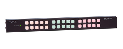 FA-1010の豊富な機能へのアクセスを容易にするリモートコントロールパネルFA-AUX30も用意しています。FA-AUX30はGPIで動作するスイッチボックスで、30個のボタンに対してGPIを設定すれば、ルータのパネルとして利用したり、各機能へのショートカットとして利用するなど、自由な使い方が可能です。GPI設定はあらかじめプリセットパターンが準備されているため、細かな設定を行わずともすぐに使い始めることも可能です。