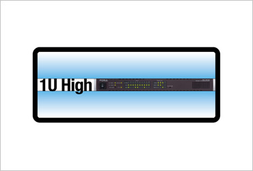 1Uサイズに10台分のプロセッサ機能を有していることから、省スペース化に大きく貢献します。中継車など、機材スペースが限られたシステムでの活用や、回線センターなど、大量の入出力を扱うシステムにおいて大いに活躍します。
