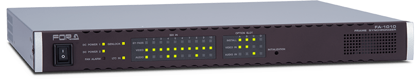 FA-1010は映像制作に必要とされる多彩な機能を搭載する一方、多チャネルルーティング(ビデオ入力x10・出力x10)をも可能にするフレームシンクロナイザです。 標準で3G-SDIおよびHD/SD-SDI入出力に対応、フレームシンクロナイザとしての機能はもちろん、カラーコレクタを標準搭載し、各種ビデオ信号の変換も可能です。オーディオ信号処理ではディレイ調整やリマップ機能、サンプリングレートコンバータを搭載し多才ぶりを発揮。回線、中継、報道、制作、編集、送出など、映像制作現場で求められる機能を1台で可能にします。