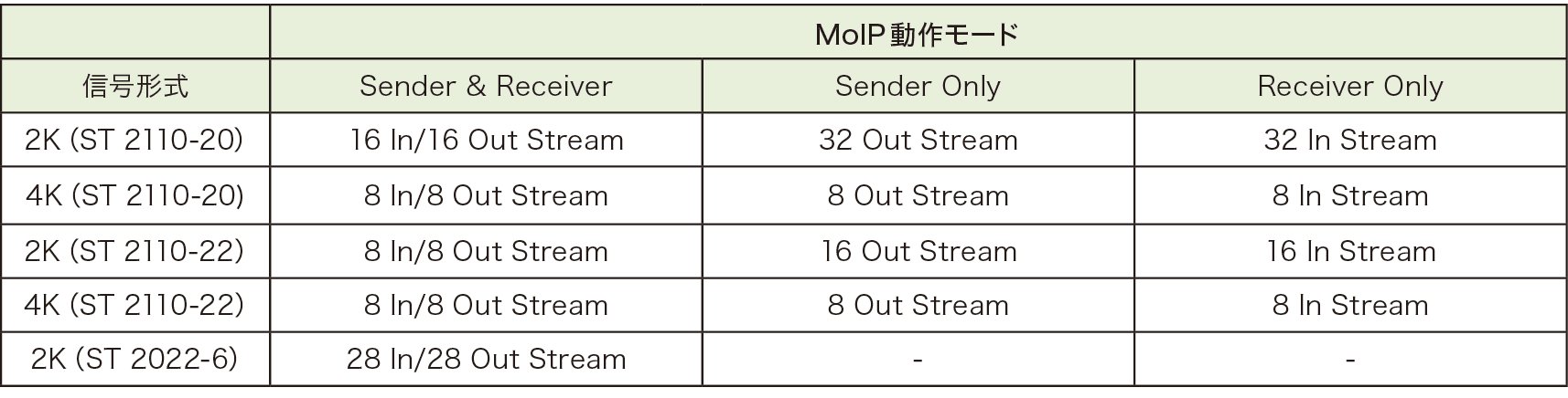 – 受信のみ:HD(3G)×32または4K×8