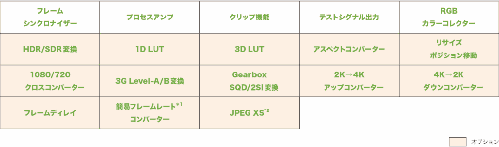 - MoIPオプション実装時はFS、カラーコレクター付きのSDI/IPゲートウェイとして使用可能