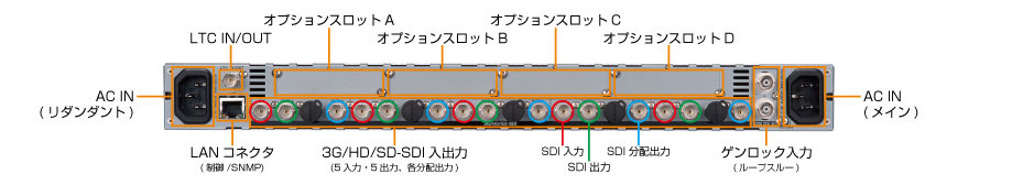 • アップコンバータ:SD→HD、HD→3G、SD→3Gへの変換が可能