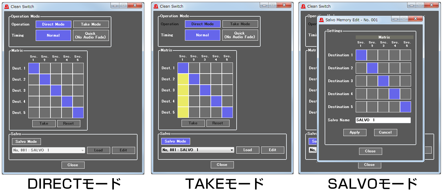 ビデオ、オーディオともに5 x 5のクリーンスイッチを搭載しています。