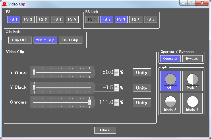 朋栄のカラーコレクタで評判のクリップ機能を継承。Y/PB/PRまたはRGBクリップ機能により、色情報を最適な範囲内に押さえ込むことが可能です。