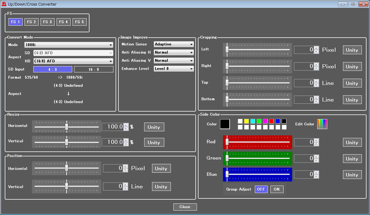 5系統のアップ/ダウン/クロス/アスペクトコンバータ機能を搭載。3G/HD/SDの相互変換を実現します。