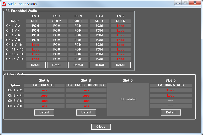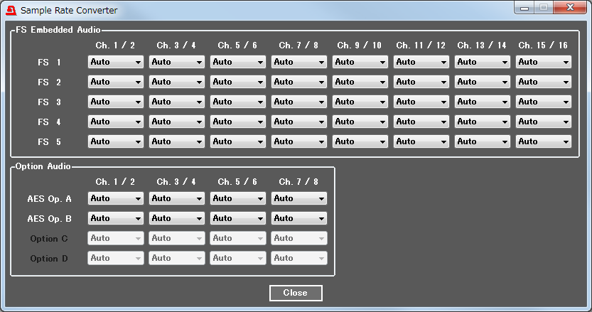 • ダウンミックスは、SDIエンベッドされた音声信号のみに対応