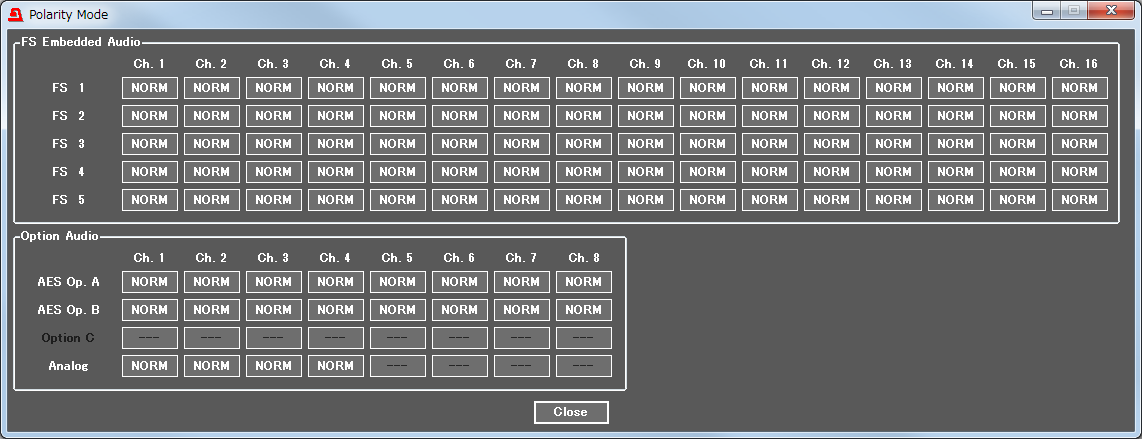 オーディオチャネルごとに極性を反転させることが可能です。意図せず位相がずれてしまったオーディオチャネルを修正することができます。