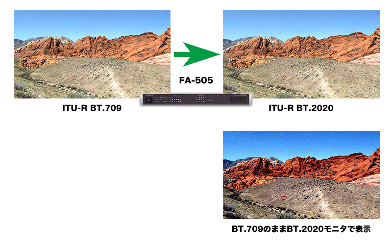 広色域ITU-R BT.2020に対応し、ITU-R BT.2020とITU-R BT.709の相互変換が可能になりました。