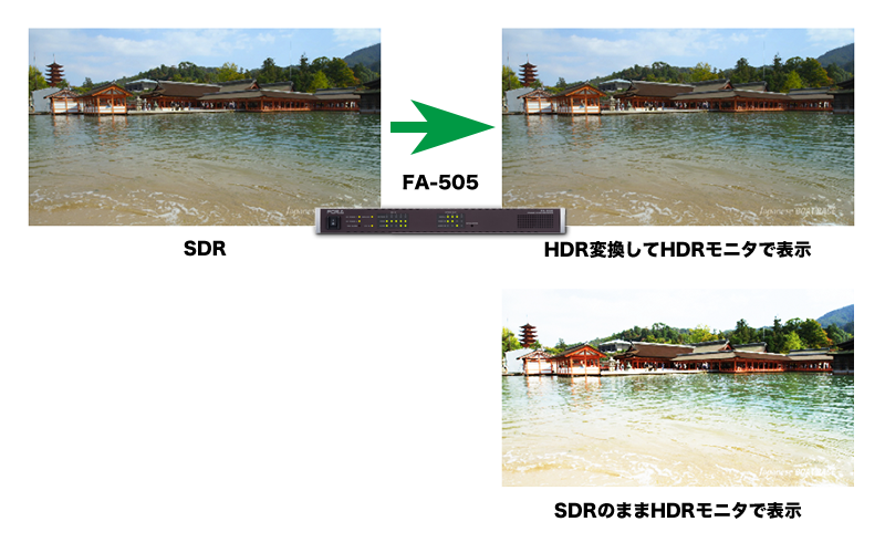 • FA-505 ではSQD、2SI 信号の相互変換はできません。また、ITU-R BT.2100 で規定されているHLG (Hybrid Log-Gamma) OOTF には対応していません。