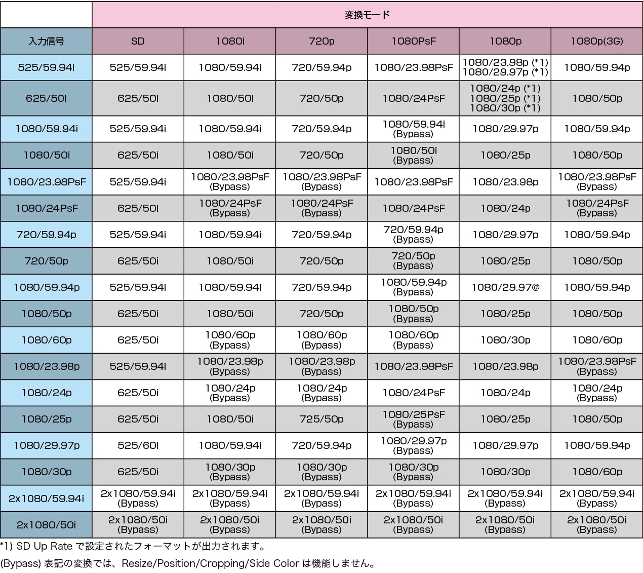 • クロスコンバータ:1080i→720P、720P→1080iへの変換が可能