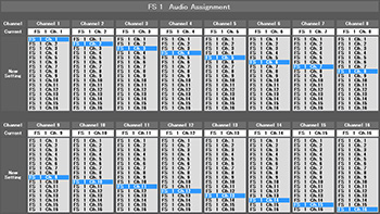 ビデオにエンベッドするオーディオチャネルを、順番を含めて自由に変更可能です。5系統のビデオすべてのチャネルにまたがってリマップが可能です。オプションのオーディオチャネルとの差し替えやメイン音声と副音声との差し替え等に便利な機能です。