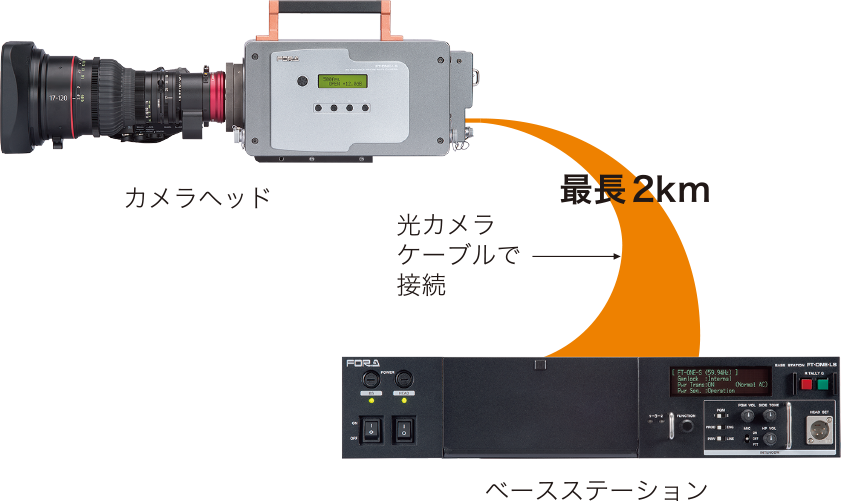 4K解像度の高速度カメラとしてご好評いただいたFT-ONE-Sの後継モデル。暗部撮影を強化し、2/3″バヨネットマウントレンズを使用しても美しい映像を撮影することが可能になりました。ビデオサーバへの常時出力、フリッカー補正機能*1も追加し、体育館やドームなどの屋内撮影やナイターの撮影にも適した、高い汎用性をもつ高速度カメラとして生まれ変わりました。FT-ONE-S同様に、カメラヘッド部 (撮像部) とベースステーション (本体ユニット) が分離しているため、スーパースロー映像の再生中にカメラヘッドの電源をオフにしての移動も可能です。