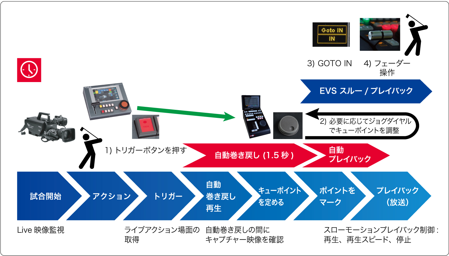 EVSや他のスローモーションオペレーターに親和性のある、リプレイシステムを使用した新しいワークフローを構築可能