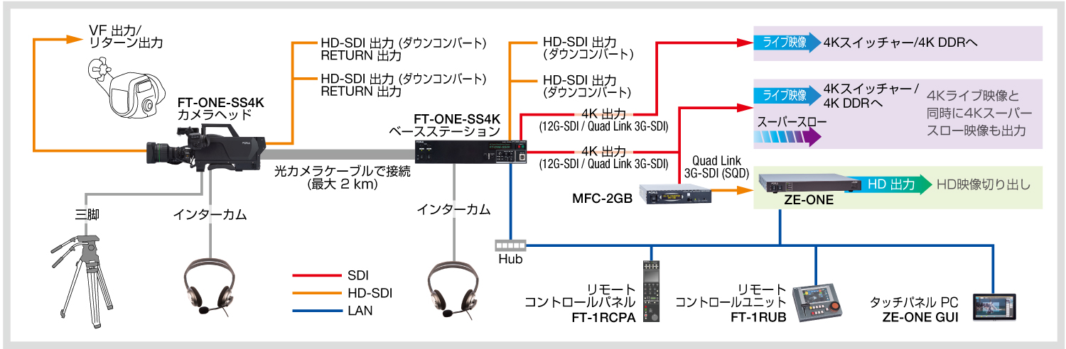 - 12G-SDIまたはQuad link 3G-SDI出力に対応