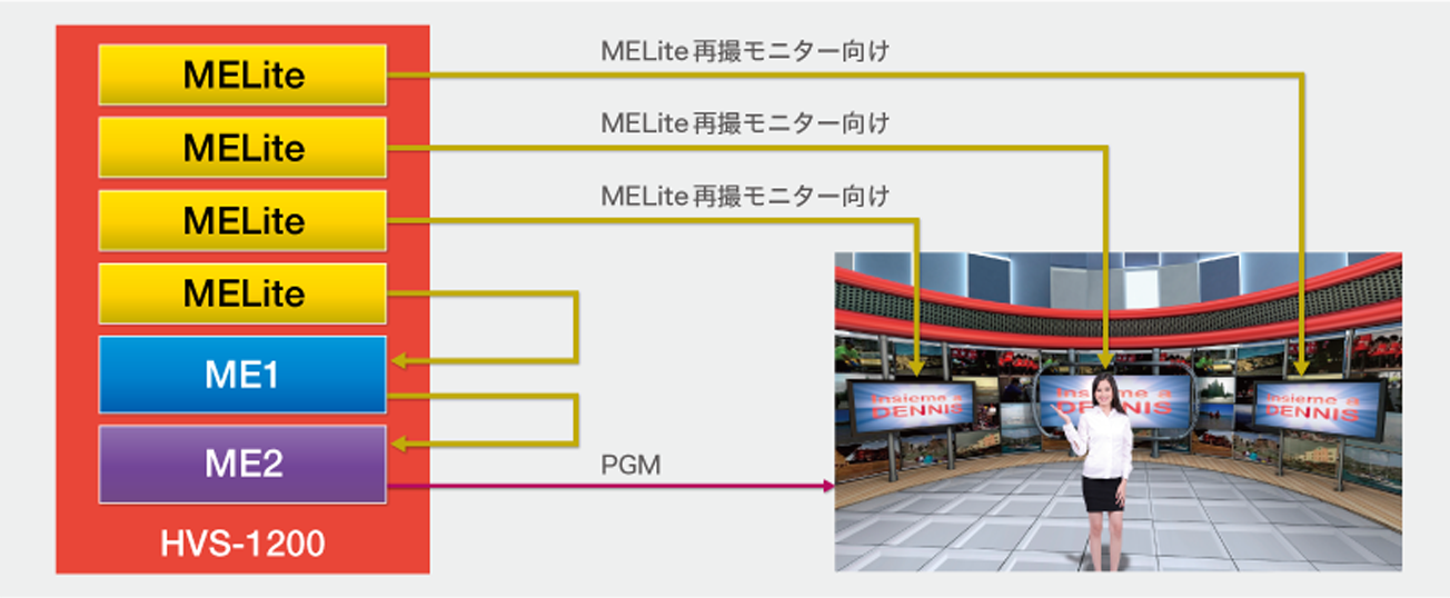 - MELiteはM/E列の前段に配置可能なため、より高度な演出用の列として使用が可能。