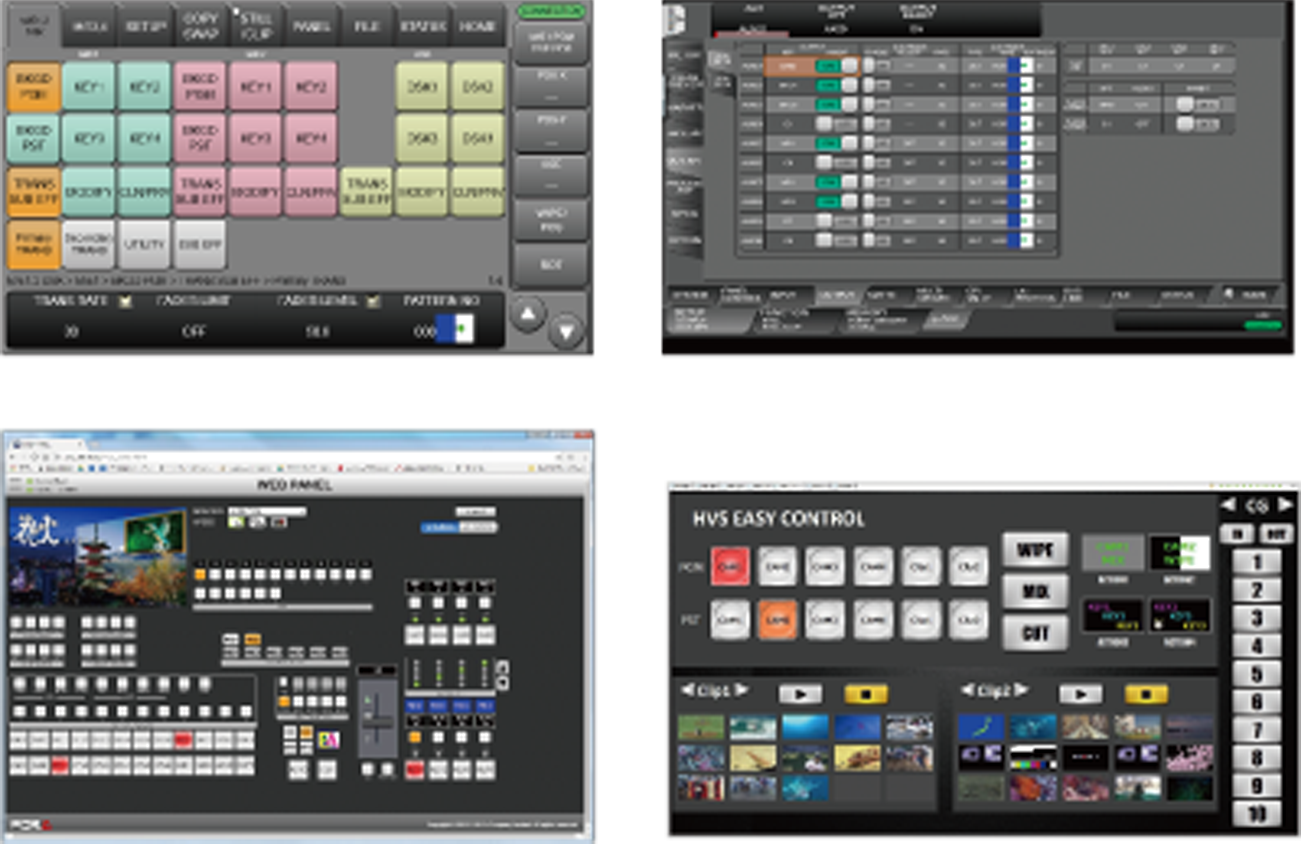 コントロールパネルには小型GUI(7インチディズプレイ)を標準搭載しています。外部モニターに接続すればタッチ操作可能な大型GUIの表示も可能です。必要なパラメーターを一覧表示させながら素早く設定を変更できるため、編集時間の短縮に役立ちます。また、Webブラウザー(Chrome)で本体にアクセスすると、携帯・タブレットからでも簡易オペレーションが可能なGUIパネルを表示し操作が可能です。STILL映像の切替えやタブレットで加工したPNGファイル(アルファチャネル付き)のアップロードも可能です。パスワードロックにより運用面でのセキュリティーも確保しています。さらにスイッチャーを含む外部機器の操作まで1つのGUIに集約しワンマンオペレーションを助けるソフトウェア製品GearLinkとの相性も抜群です。