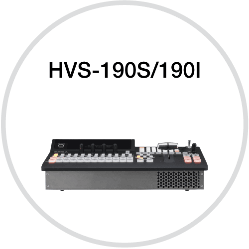 ○HVS-190S ・M/E:1M/E ・最大入出力:20入力11出力 ・対応信号:3G / HD / SD-SDI ○HVS-190I ・M/E:1M/E ・最大入出力:16入力9出力 ・対応信号:3G / HD / SD-SDI