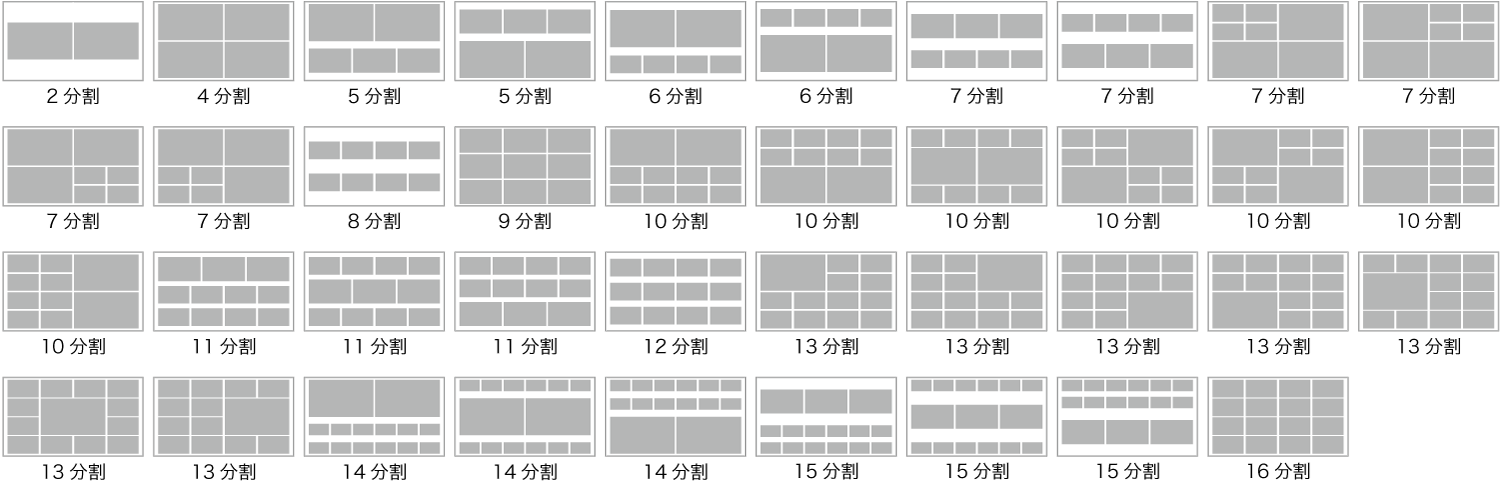 マルチビューワーは39種類の分割パターンを選択可能