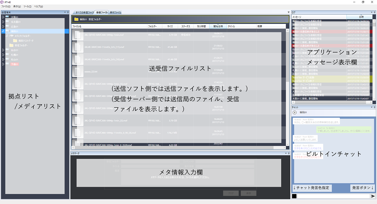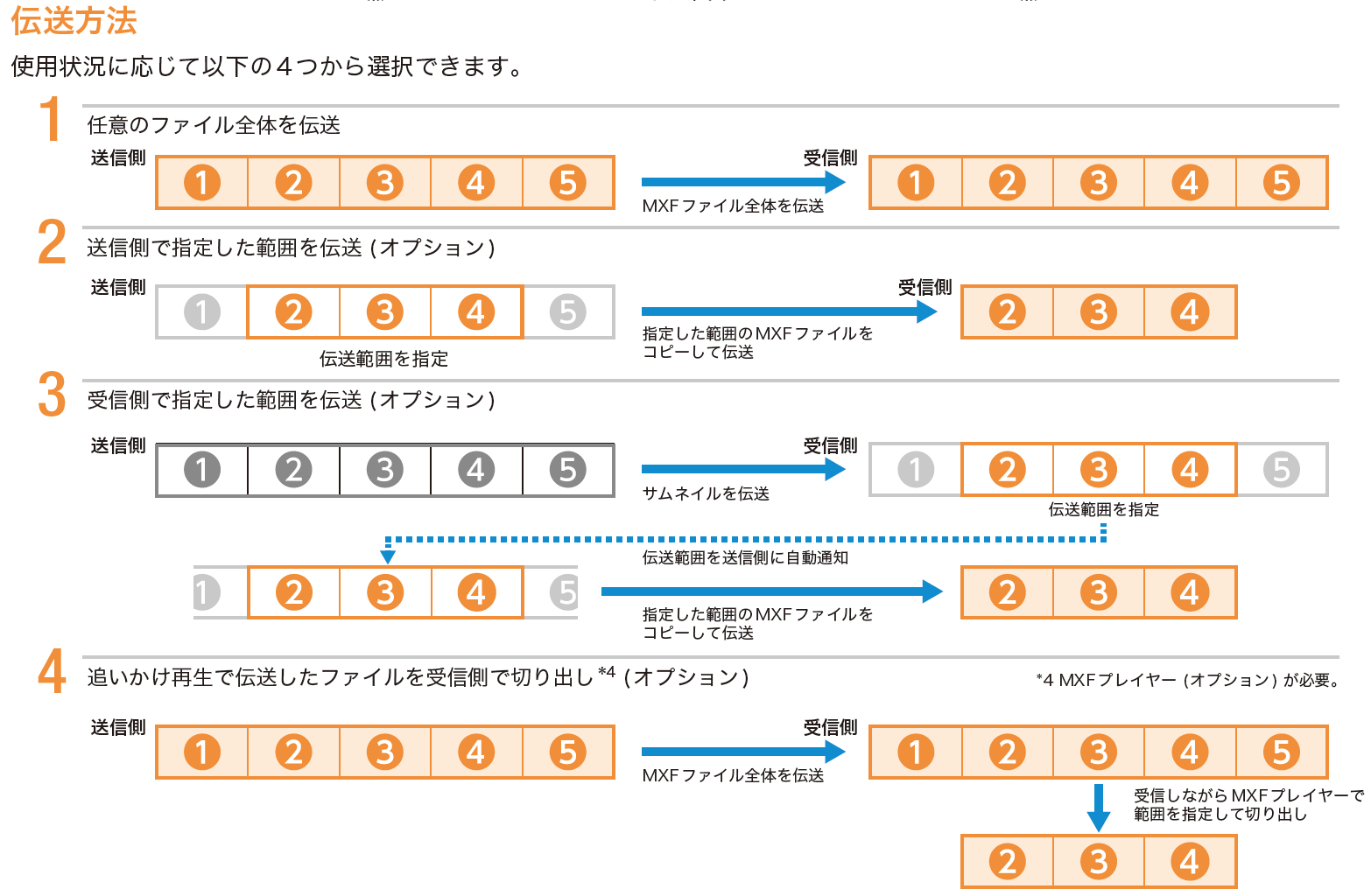 - テキストや静止画など文書データを含む、MXFファイル以外のデータも伝送可能。
