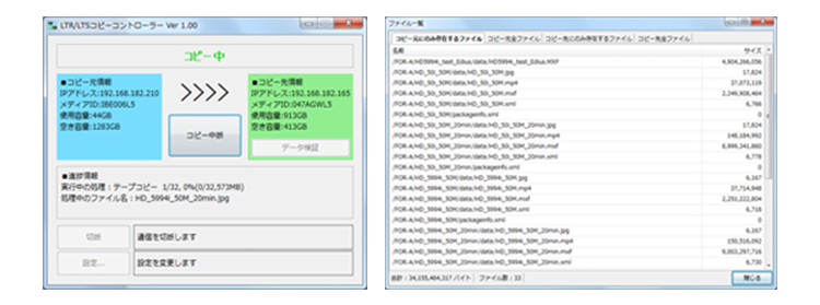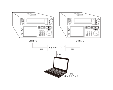 LTR/LTS コピーコントローラは、PCとLAN接続した朋栄製品のLTRシリーズまたはLTSシリーズを2台使用し、LTOテープの内容をコピーするソフトウェアオプション機能です。