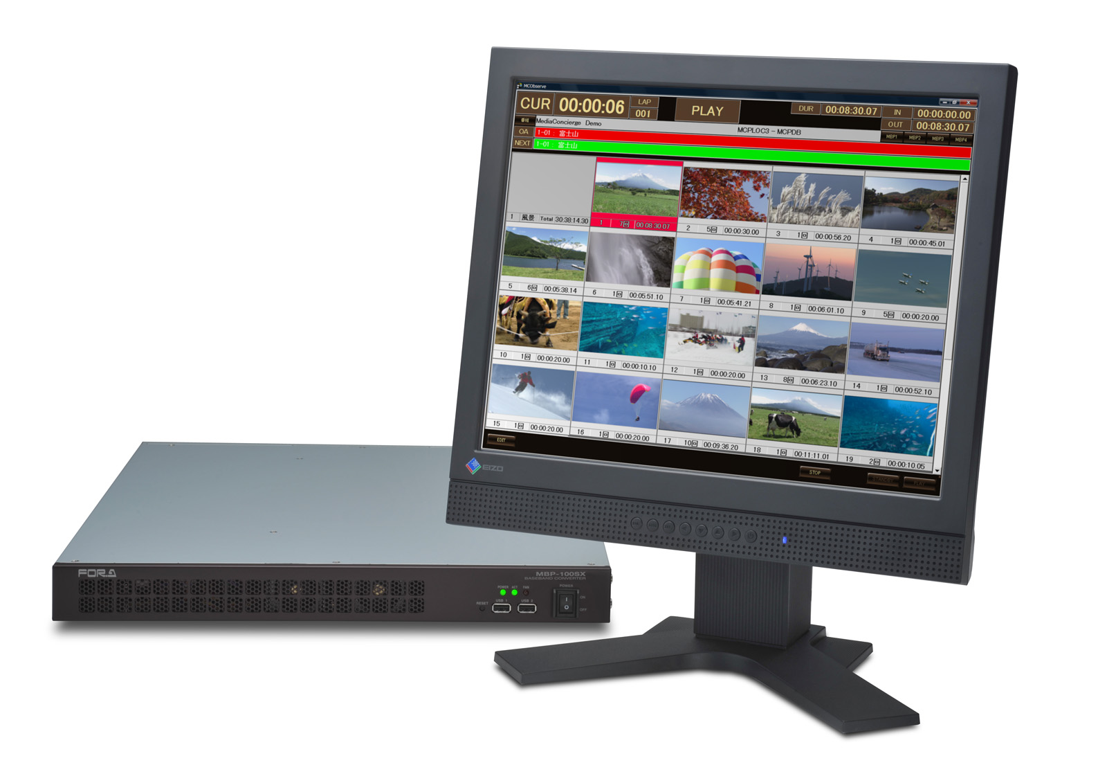 MBP-100SX/110SXA/100PDは、HD/SD-SDI入出力、記録用のSSD (Solid State Drive) を搭載した1RUサイズの小型クリップサーバです。SONY XDCAM/XDCAM HD互換またはPanasonic P2/P2HD互換のMXFファイルの記録・再生機能を搭載し、ギガビットイーサネットを利用したクリップの転送や保存が可能です。インジェスト用途やV素材送出、さらにはAPCを利用した番組送出など、様々な用途に対して高い汎用性と信頼性をご提供します。