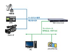 - HD/SD-SDI 入出力を搭載し、ベースバンド信号とMXFファイルの相互変換に対応(インジェスト用途)