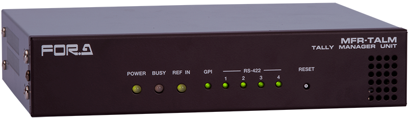 - MFR本体と周辺機器(スイッチャ、マルチビューワ等)のタリー、素材名称を集中管理するオプションユニット。1RUハーフサイズ。タリー連動システムにおいて、タリー演算を本製品が担う事により、タリー連動の高速化を実現。