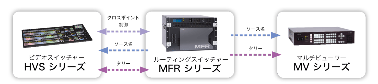 - MFR、MV間はTSLプロトコルにて名称、タリー連動を実現