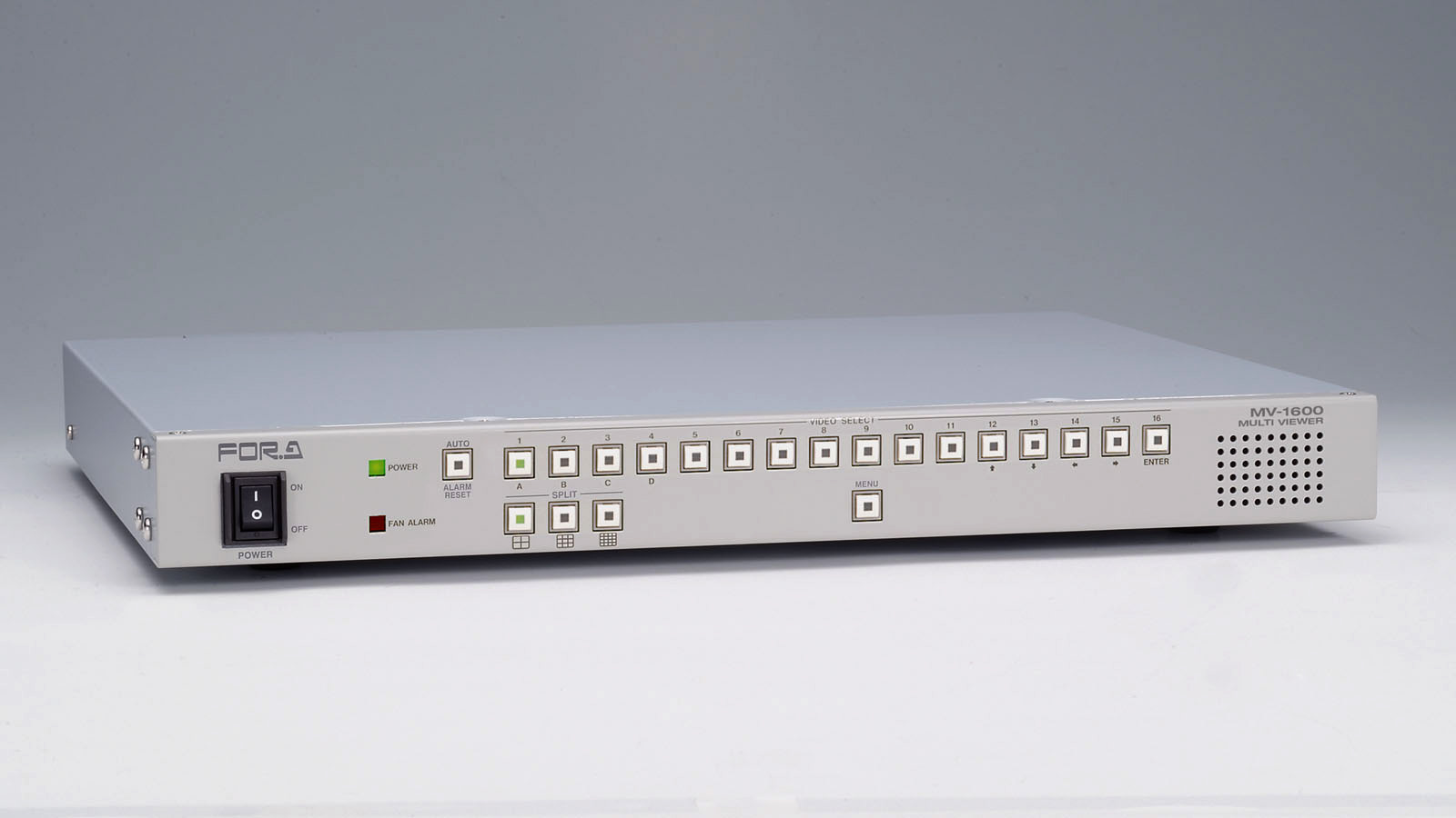 最大16系統の映像を1台のモニタで表示可能なマルチビューワ。通常のビデオ出力のほか、SXGA高精細出力およびネットワークを利用した遠隔監視機能を標準装備。