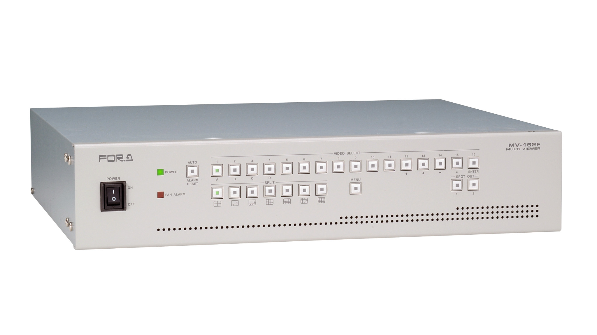 - 分割表示とは別に、任意の入力映像をフル画面で出力可能なスポット出力を2系統装備