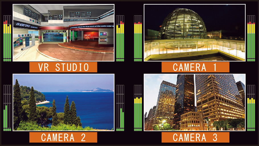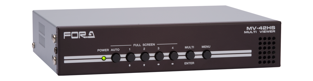 1画面、左右2分割画面または4分割画面をHD-SDIおよびDVI-Dで出力。HD-SDI、SD-SDI、アナログコンポジット (オプション) の混在入力に対応。また、オプションの実装により、タリー表示やLANでの外部制御も可能。